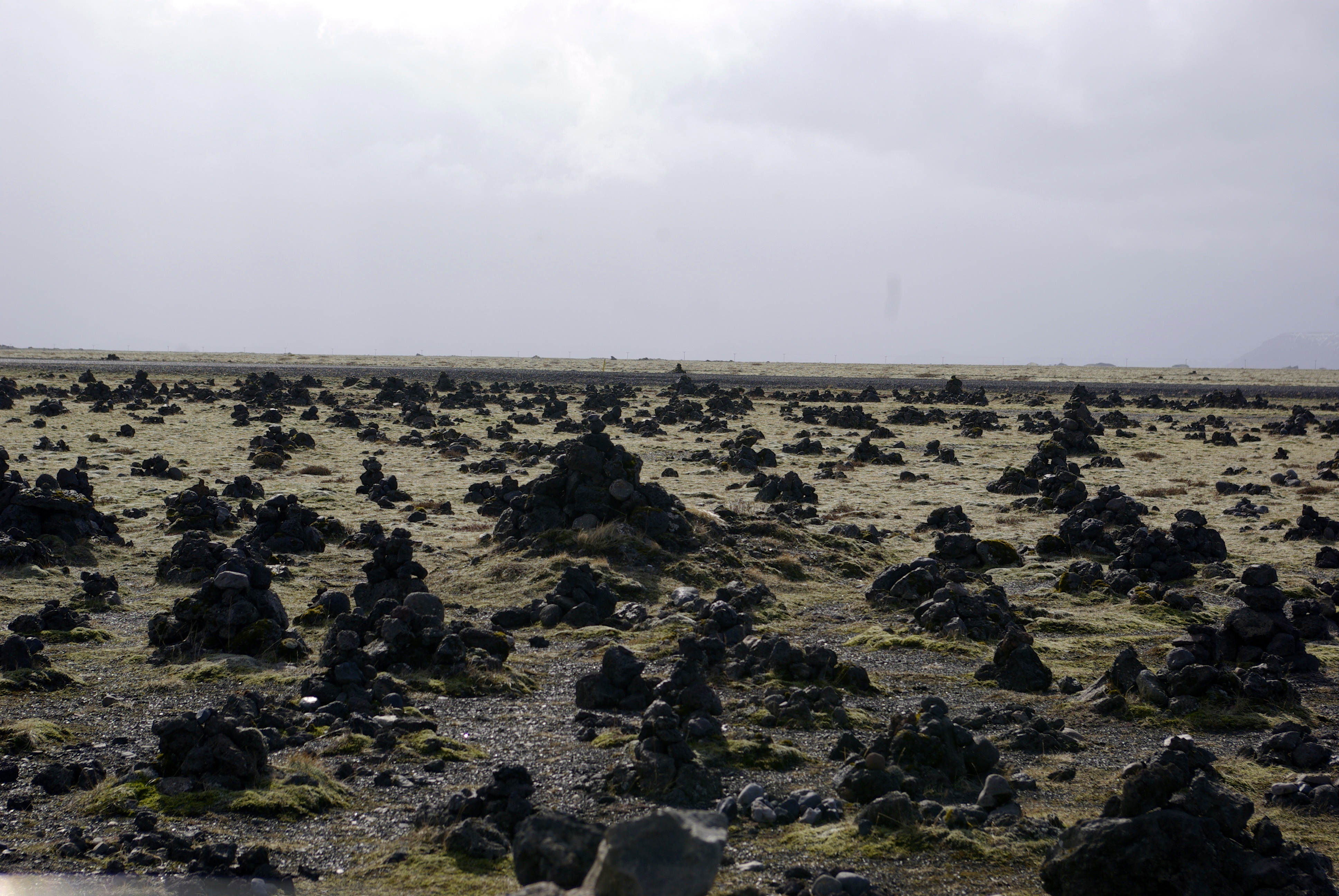 In addition to the turf houses, waterfalls and mountains you will also come across fields covered in these rock piles. The rock piles are said to have been markers for travelers and you will find these types of rock piles along the road all over Iceland.