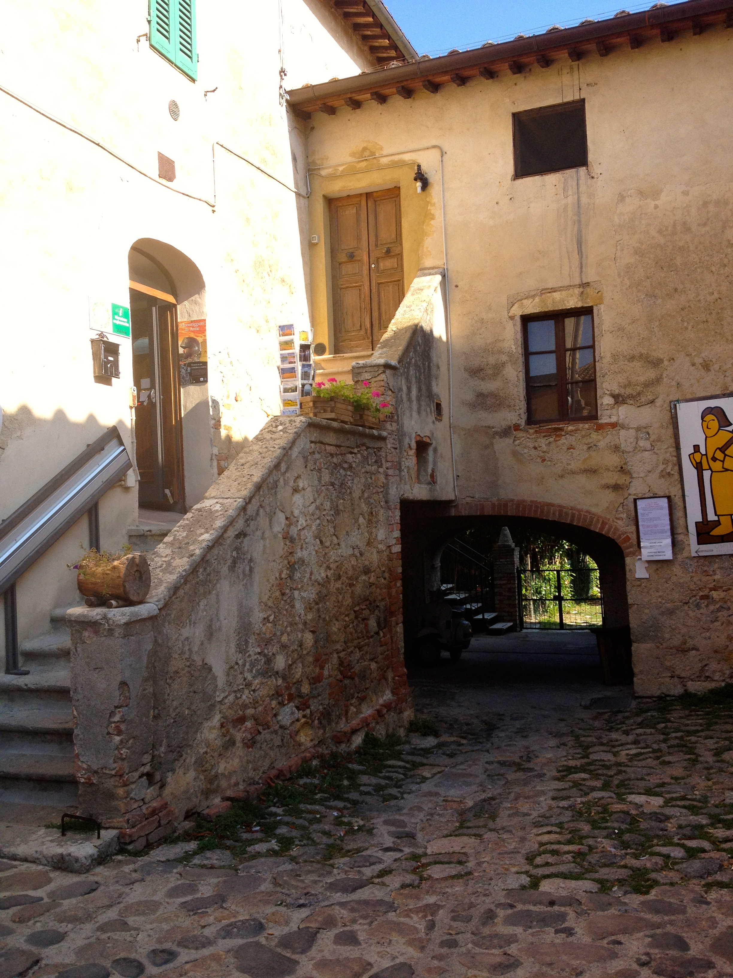 Two gates are used as entrances to enter Monteriggioni. One is known as the Romea Gate and faces Rome. The other is known as Florentine Gate which faces Florence.