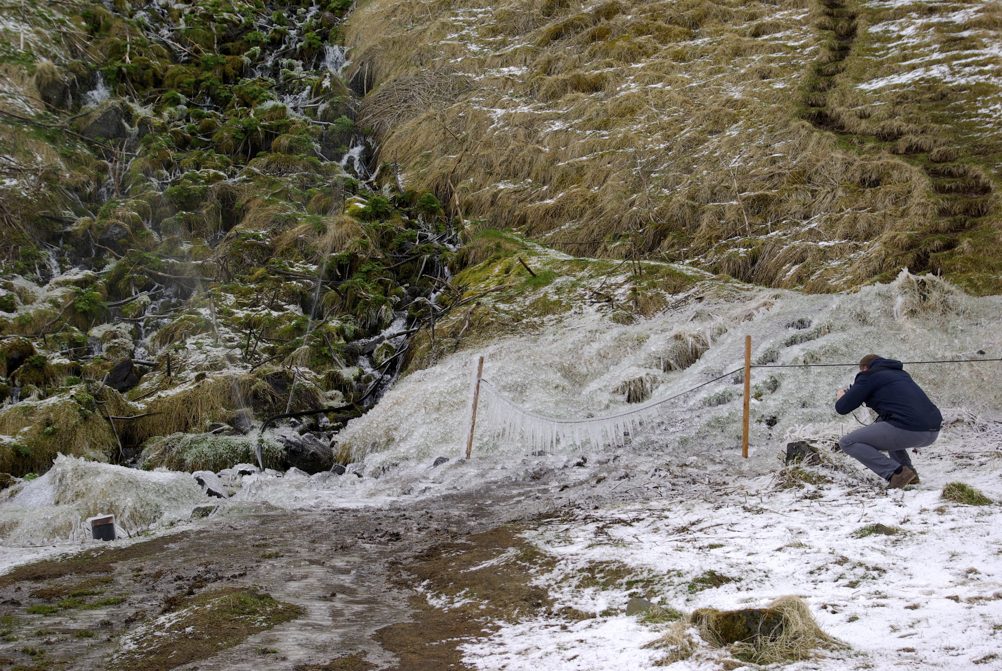 It is still quite chilly and frozen here in Iceland as you can see but at least we weren’t getting snowed on, yet. I have visited this waterfall once before in the summer when there was crowds everywhere so it was great to have the place mostly to ourselves this time. This just meant though that I had to wait for H to take a picture of every single thing!