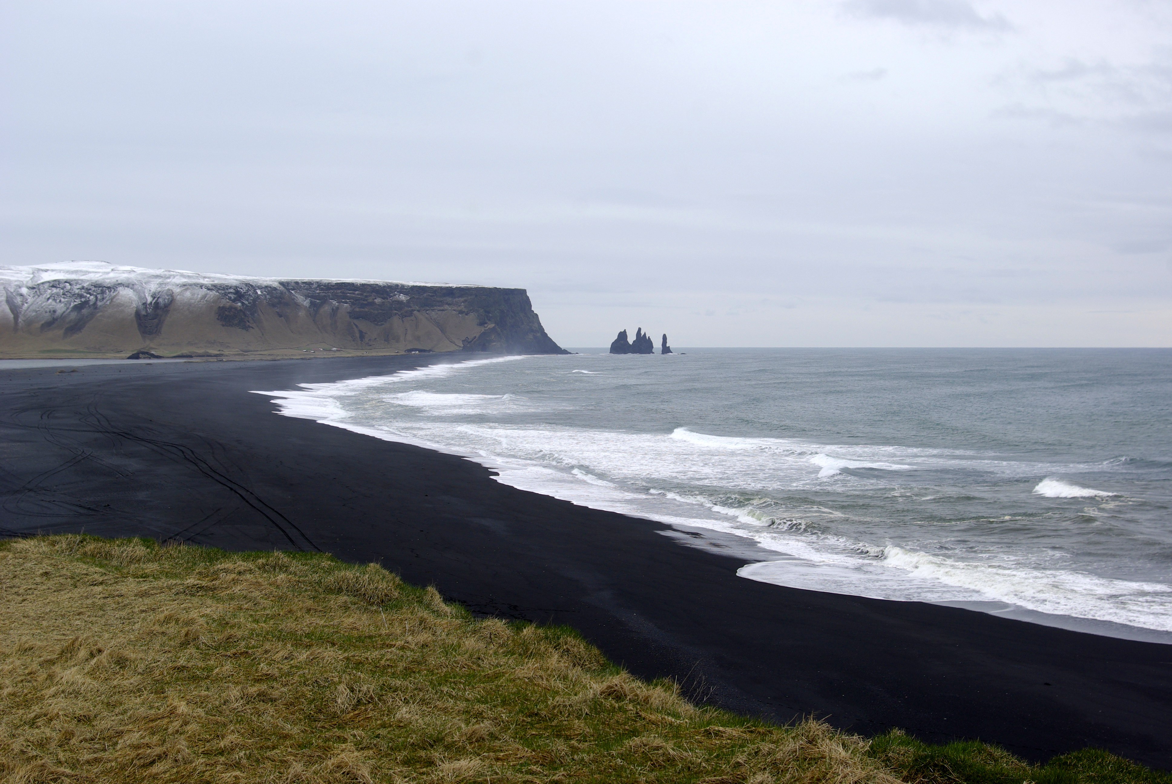 With the sky growing darker by the minute we arrived at our next stop, the black sand beaches of Reynisdrangar.