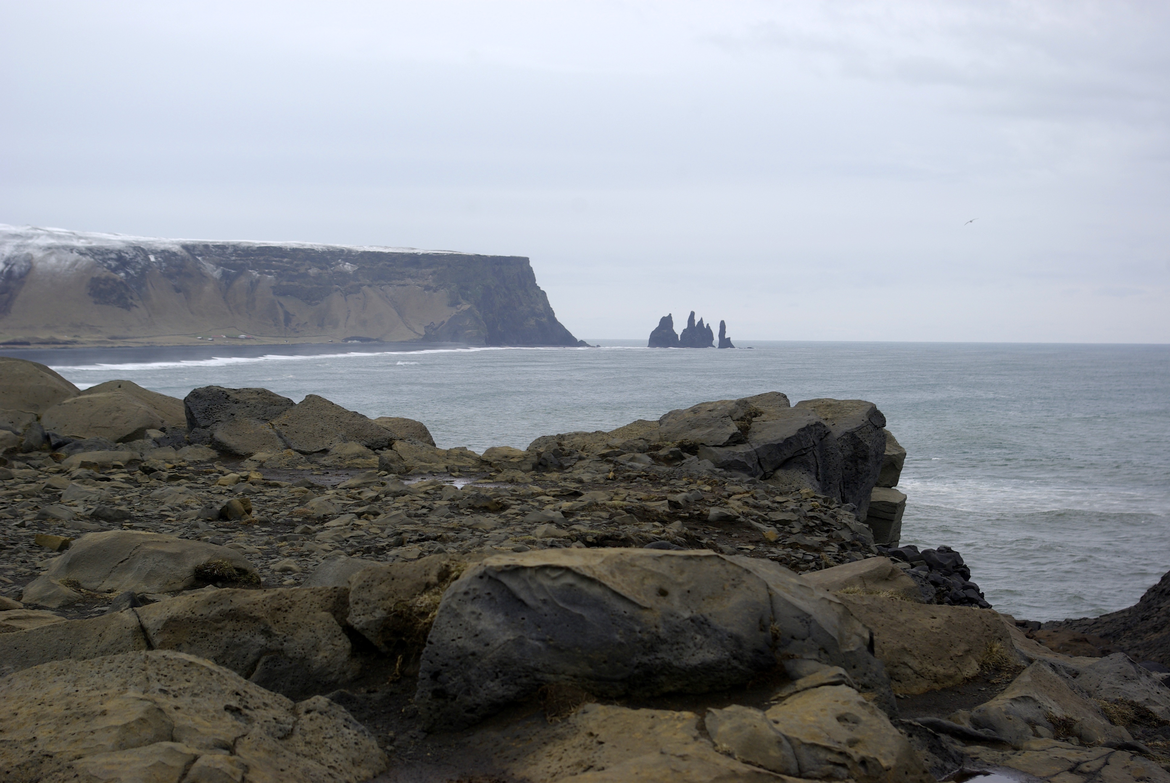 The three rock formations you see in the ocean are said to have been created by two trolls when they dragged a three-masted ship to land. These rocks are a very famous stop for photographers and whenever you look up Iceland you most likely will see pictures of Reynisdrangar.