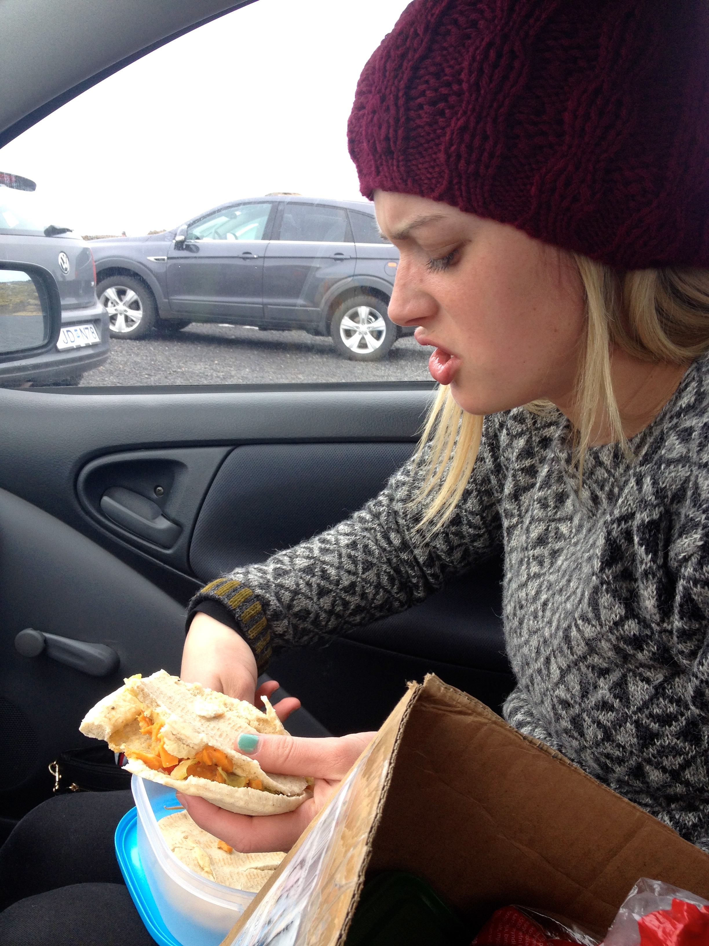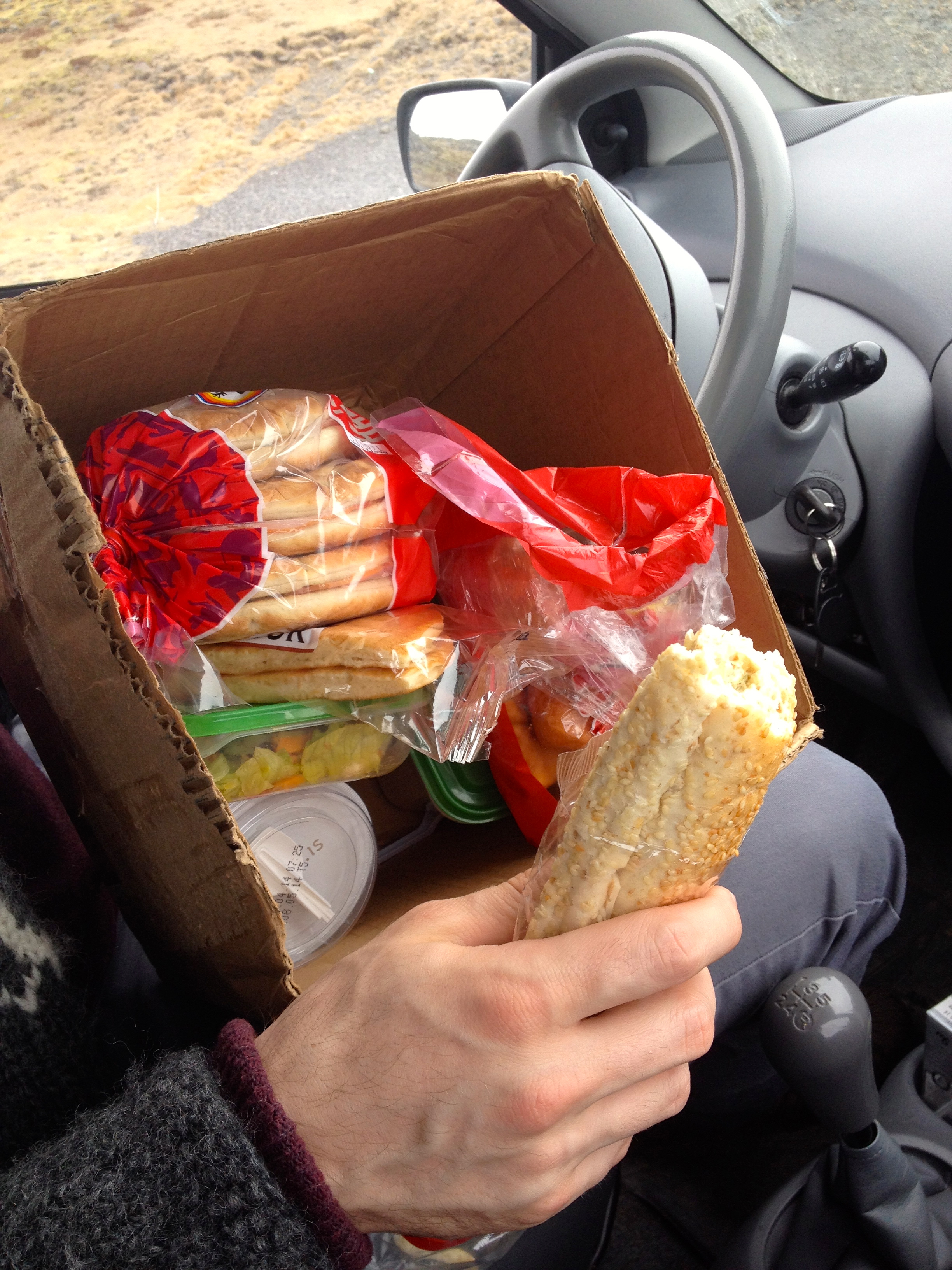 Before heading off on our journey it was time for a lunch break. Just a tip restaurants and shops are far and few when traveling in the Icelandic countryside so be sure to bring lots of food with you. For example our lovely food box..