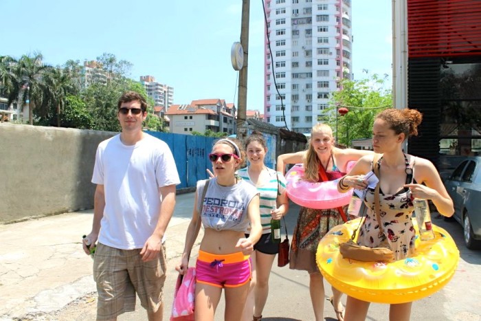 Surprisingly enough, I wasn’t the last one back, and after we had all returned, the Hash Harriers leaders grabbed my friends and I for a little “initiation”. They made us sit on bags of ice, while we were told a joke about pregnant women. Since our Chinese was pretty basic at the time, none of us knew the word “pregnant” in Chinese. Rather than abandoning the joke, the man started pantomiming a pregnant woman’s belly while saying the word over and over again.